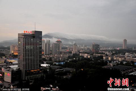 7月11日傍晚時分,陣雨中的紫金山突然從北坡往南坡,有大片的云層翻過長長的山梁,景象極為壯觀,持續了相當一段時間.