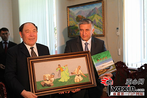 中國新疆綜合文化交流代表團給塔吉克斯坦文化部贈送紀念品