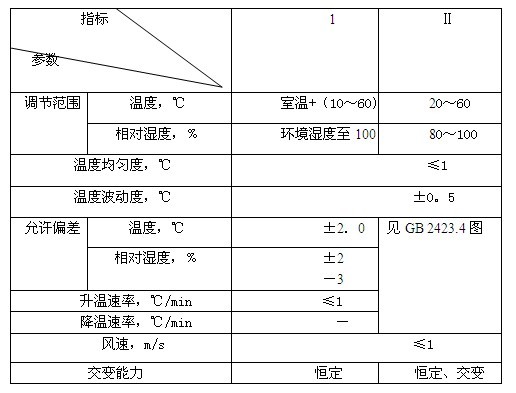 高低溫試驗箱產品性能劃分(備注:試驗箱按使用性能分為ⅠⅡ兩類其性能指標見下表)